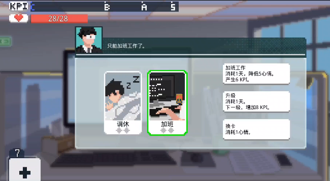 而当主角踏入职场后,游玩内容又回归到了卡牌为主体的模拟经营,只不过模拟的数值不再是心理状态,而是职场的KPI;