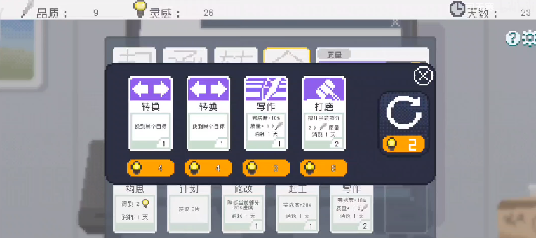 实现主角成为小说家的梦想,也是靠一套卡牌逻辑下的要素把控玩法,在有限天数内达成更高的质量。