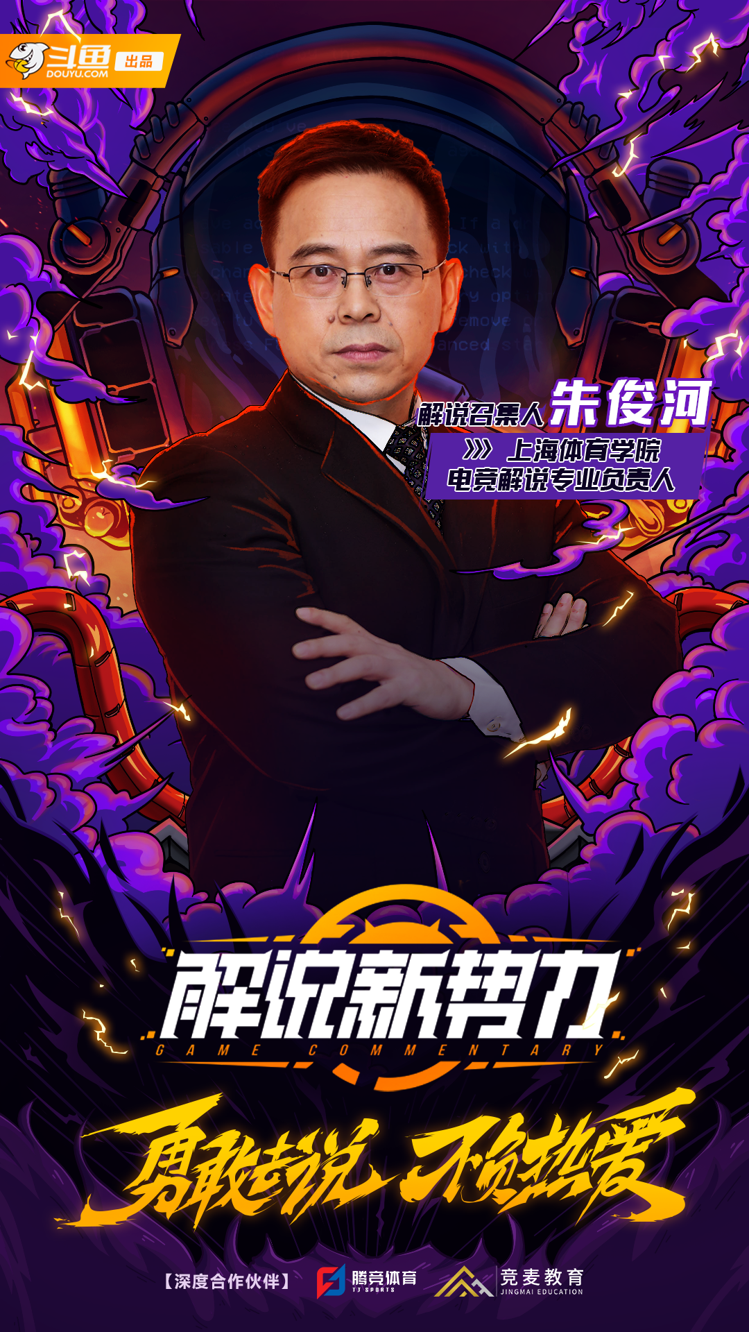 解说召集人朱俊河老师,来自上海体育学院。上海体育学院是中国首家开设电竞解说专业的知名高校,两代人的“电竞”,不一样的选择,朱老师用自己对语言表达功底的博学,充实解说选手们的基本功,让观众感受语言的魅力。