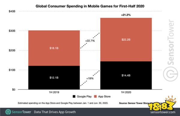 2020上半年全球手游营收同比增长21.2% | 来源:SensorTower