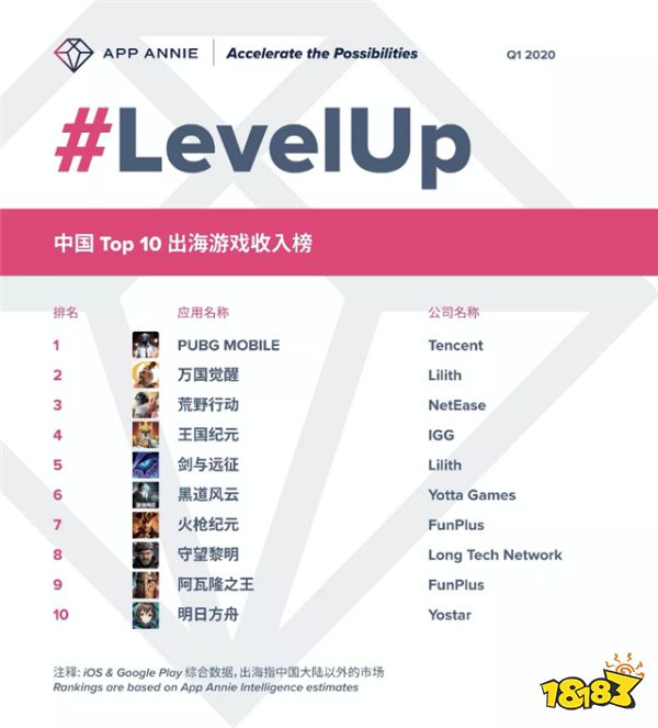 从 App Annie 发布的2020年Q1中国 Top10 出海游戏收入榜中看到,策略游戏和大逃杀游戏已经成为“出海巨头”。
