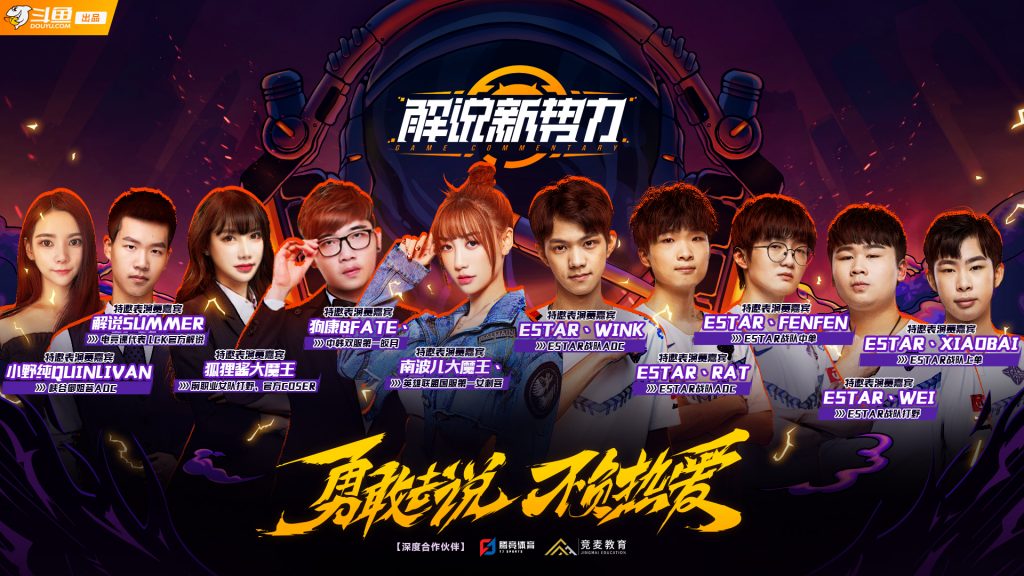 《解说新势力》直通2020英雄联盟全球总决赛解说选拔活动由斗鱼出品,腾竞体育为LPL授权方及深度合作伙伴,竞麦教育为内容深度合作伙伴。