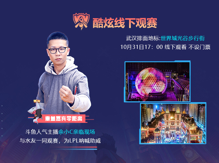 还有酷炫的线下观赛,武汉世界城光谷步行街,召唤师集结!和小C一起看总决赛!