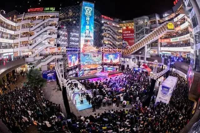希望在场内观看的观众尚且如此,场外观看比赛直播的盛景则更为爆棚。斗鱼租下武汉光谷户外场地就围满了前来观战的观众,无论是过道还是楼层都挤得水泄不通,足以看出“水友”们对赛事的热情程度。不仅如此,某些高校、电影院也对赛事进行专场播放。