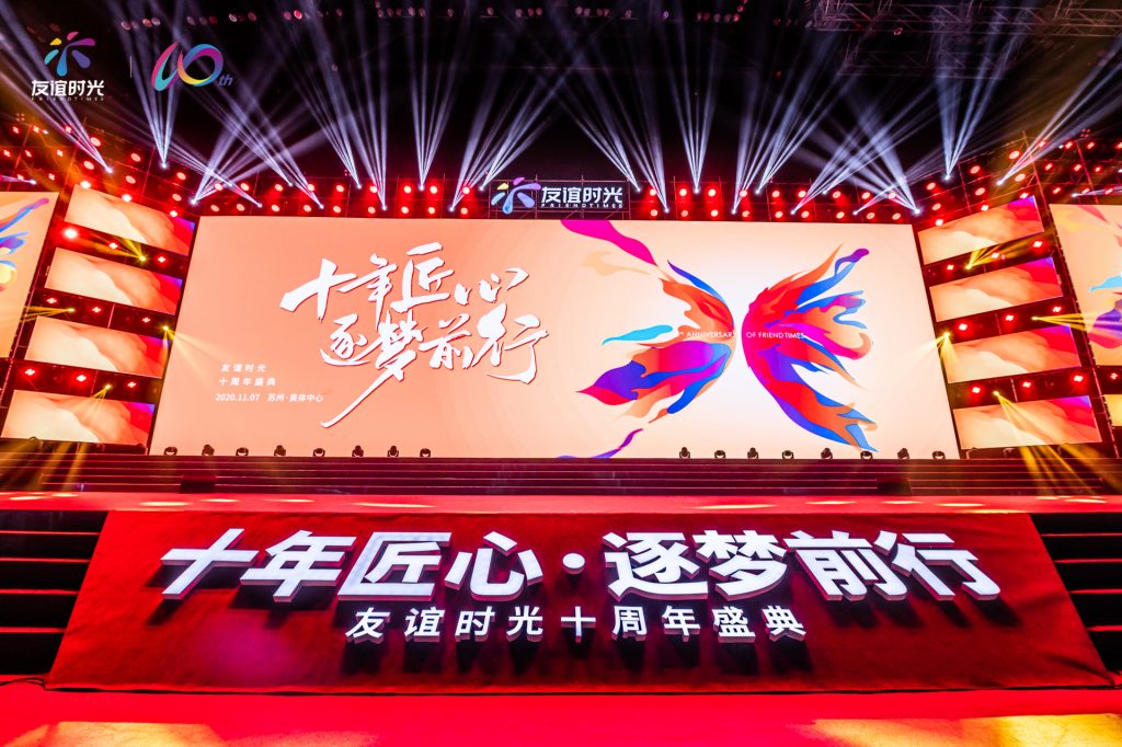今日(11月7日),苏州奥林匹克体育中心迎来了一场特别的活动:在苏州当地经营了10年的 友谊时光科技股份有限公司(以下简称“友谊时光”,英文名:FriendTimes Inc.)在这里迎接自己的10岁生日庆典。