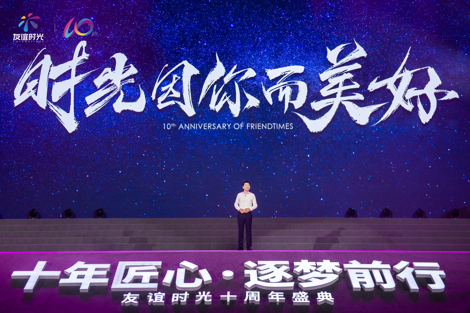 回忆起这10年间和团队一路走来所经历的艰难,友谊时光总裁蒋孝黄在周年庆活动开场的台上致辞环节中也曾几度哽咽,同时也倍感欣慰。正如之前他在接受采访时所说的那样:“人生没有白走的路,每一步都算数”,蒋孝黄以及他的团队就是这样一步步地不断往前,并最终取得了如今大家都有目共睹的成就。