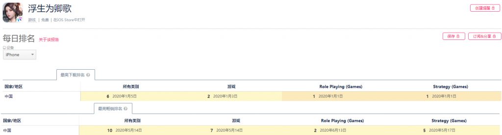 19年12月,友谊时光推出了全新3D开放式古风手游《浮生为卿歌》并在今年的1月份冲上了免费榜TOP2;来到5月游戏更是一度登上了畅销榜TOP7。尽管近年来国内手游市场的竞争日趋激烈,但是友谊时光旗下的拳头产品却仍然能够在榜单排名上屡创佳绩。