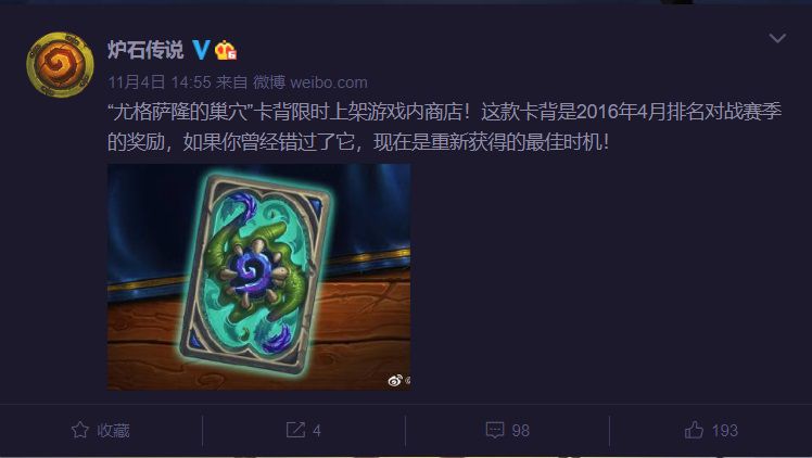接连的挫折让暴雪这株横跨端、手平台游戏独苗头晕眼花。为了“维持生计”,只得上线了“尤格萨隆的巢穴”卡背限时销售。