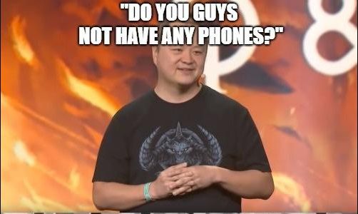 现场观众一脸“就这??”,设计师还嘴欠的来了一句“Do you guys not have any phones(你们没有手机吗)?”,结果迎来了更加猛烈的嘘声,还成为了当年嘲笑暴雪的著名梗之一。