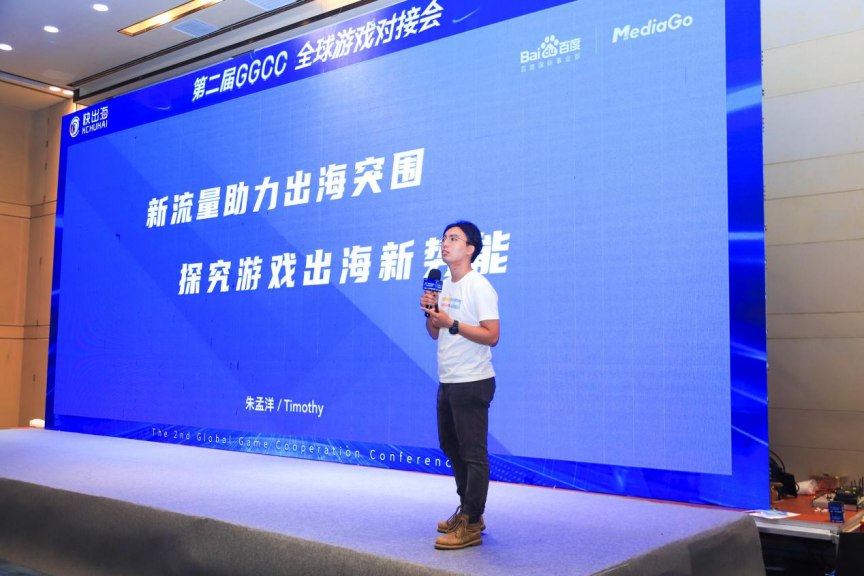 2020年11月5日,由快出海主办的第二届GGCC全球游戏对接会在深圳举办。百度国际事业部高级商务经理朱孟洋发表《新流量助力出强突围,探究游戏出海新势能》主题演讲,解读当下全球手游买量市场的新格局,探究游戏出海新势能。