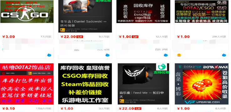 而通过某购物网站搜索,我们也可以发现大量提供饰品回收服务的商户,有商户甚至在宣传图上直接打上了“菠菜、博彩”的字样,也都存在着做银商的可能。若平台不及时予以制止和打击,平台也将可能因此承担一定责任。