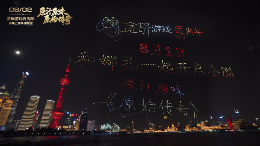 早在8月2日,配合公司五周年庆典,贪玩用500家无人机点亮上海外滩,同时也为《原始传奇》完成了一场“出圈”的线下营销,并在社交网络平台形成了较高的话题讨论度。