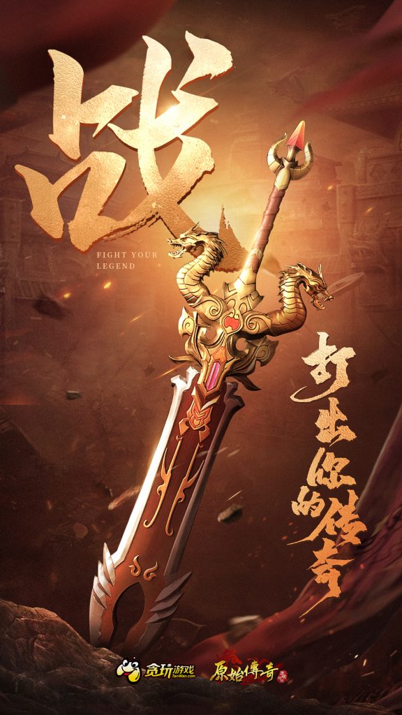 这张海报中,经典的屠龙宝刀形象的左上角有一个大大的“战”字,TVC中甄子丹的传奇造型正是游戏经典的“战士”。要知道,传奇游戏有着经典的“战法道”铁三角组合,因此我们可以大胆一点猜想,在《原始传奇》第二阶段的推广中,接下来还会出现两位新的代言人,分别代表法师和道士两个职业亮相……