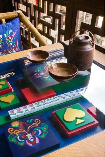 腾讯棋牌与彭水县政府联合打造了「彭水苗乡欢乐茶馆」,这个定制化的欢乐茶馆于8月20日开张;「喝茶」「打牌」「看戏」依然是游客乐在其中的地方,而有所不同的是,这三重核心体验融进了「三道茶」以及苗绣苗歌等彭水当地元素。这是一间茶馆,亦是彭水当地的文化、民俗、非遗等内容的展览馆。