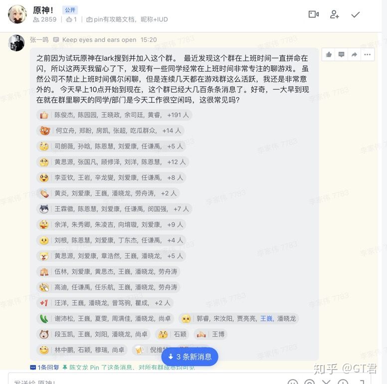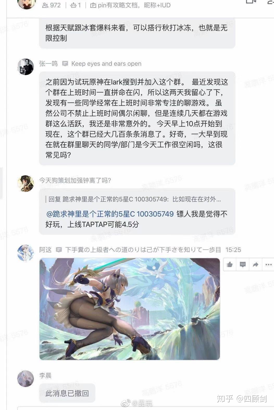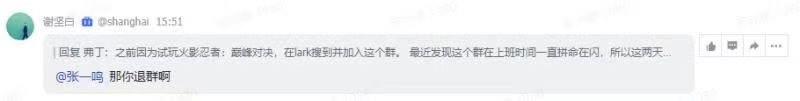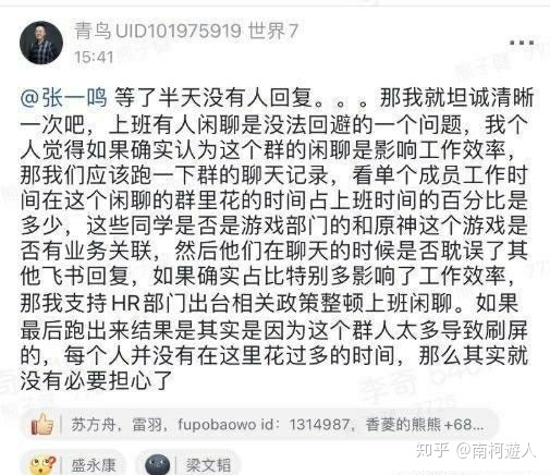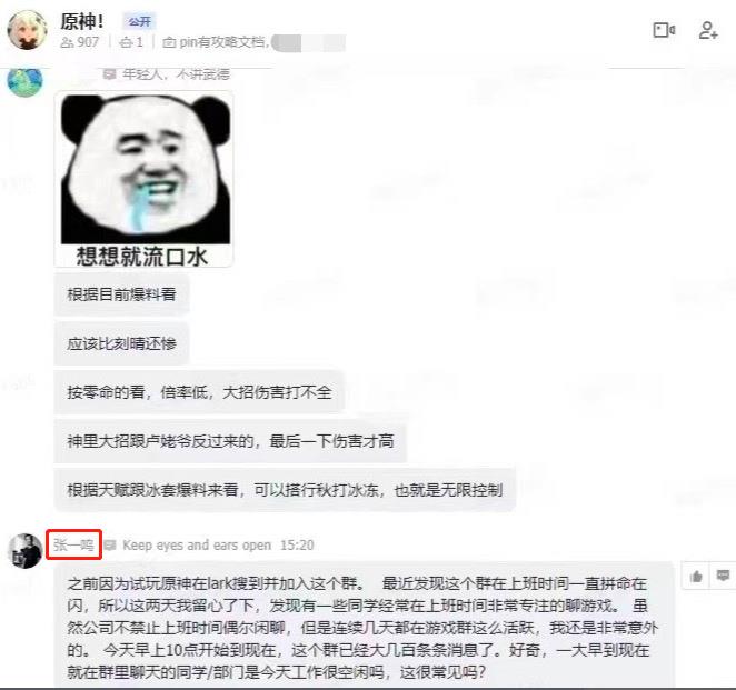 这不,字节跳动的小伙伴在上班时间群聊米哈游大作《原神》,就被大Boss张一鸣捉了个正着。