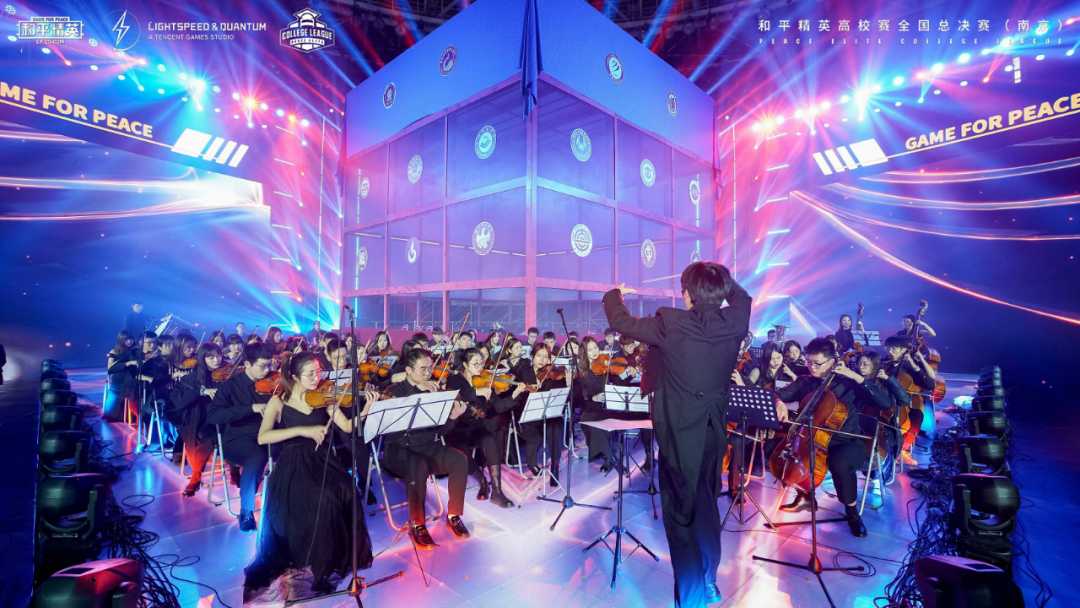 来到总决赛当天,穿插在正赛之余,来自南京艺术学院舞蹈团的30名学生表演了原创的小白裙加油进圈舞《winner winner》,南京艺术学院交响乐团则奏响了曼妙的乐章,60人乐团共同演绎和平精英大师音乐《精英之战》及《和平使者》。
