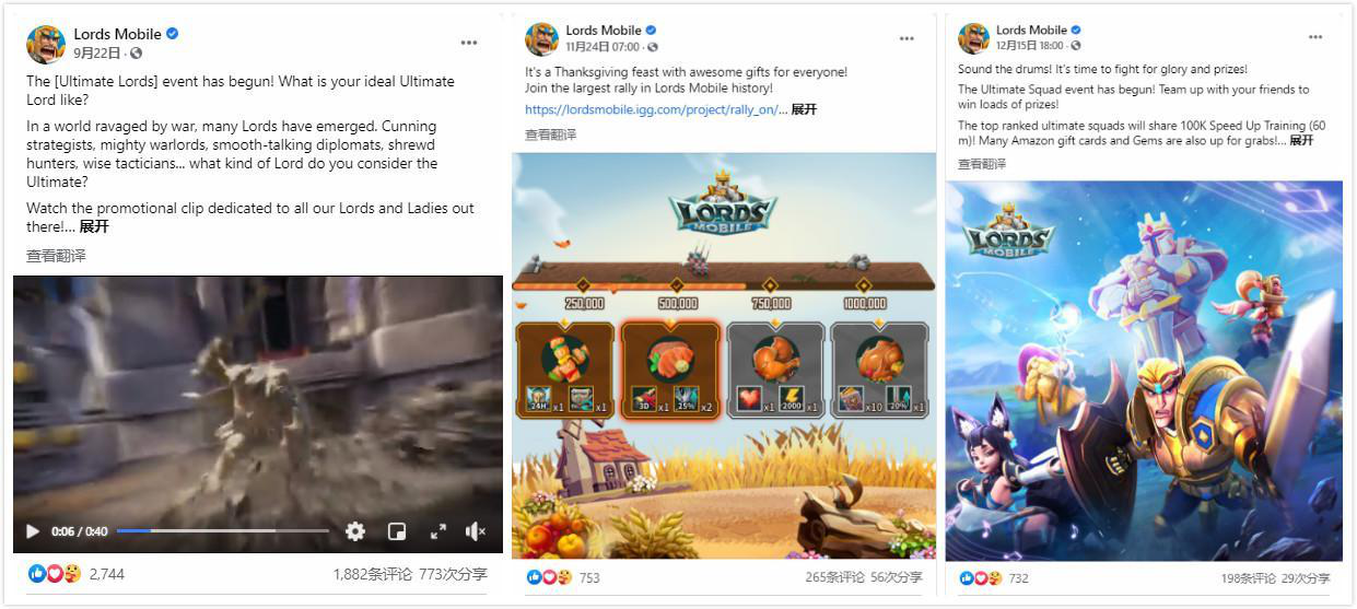 回顾今年第四季度,《王国纪元》接连开启了“超级领主”“感恩季”以及“超级战队”(英文名:Ultimate Squad)三场活动,并以社交媒体Facebook为主要平台来发布活动的相关细节。