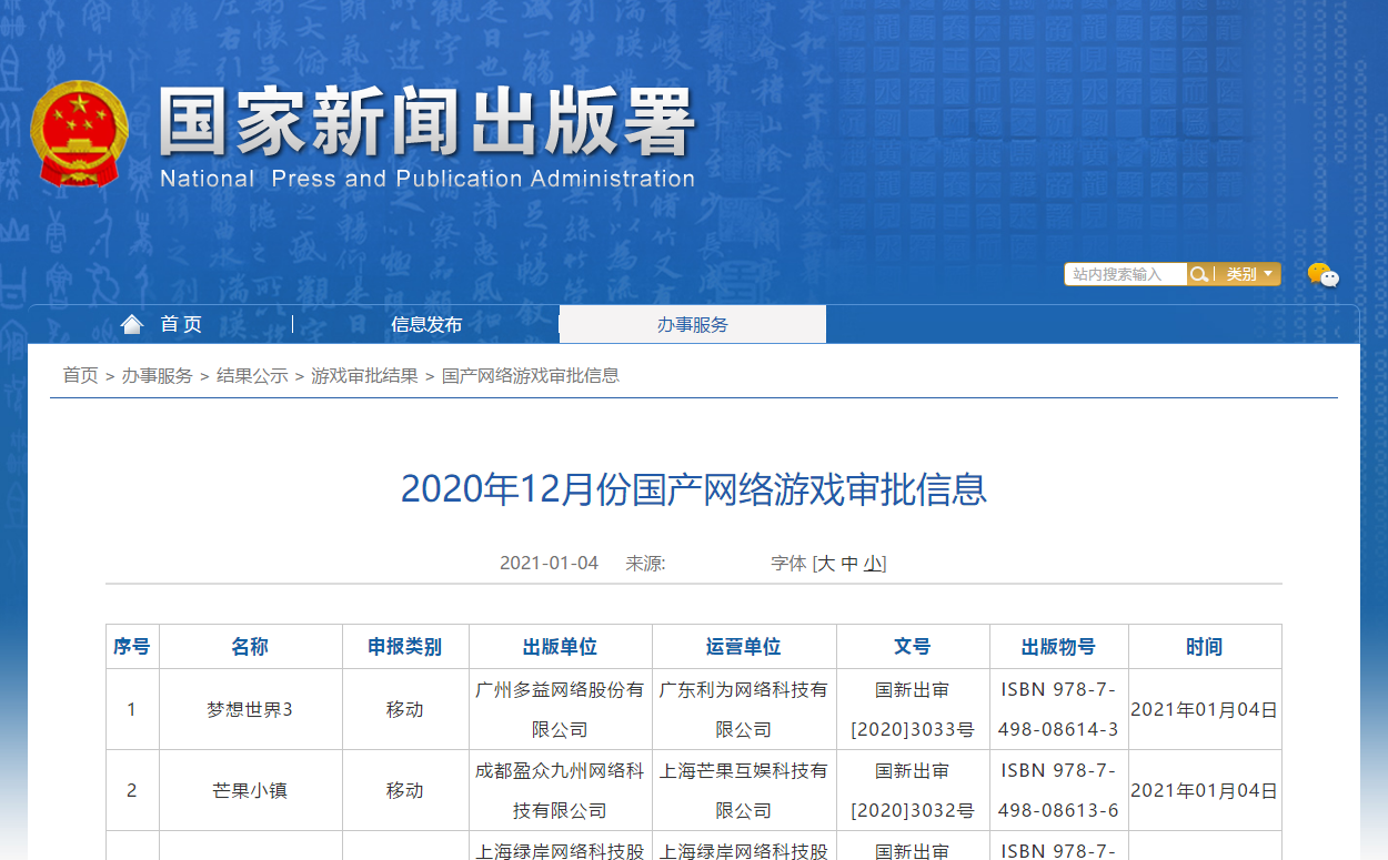 节后首日(1月4日),新闻出版广电总局发布了2021年的新一批国产游戏版号,与上一批相隔34天。不过从公示结果归类来看,本批次应该是去年12月份的版号。