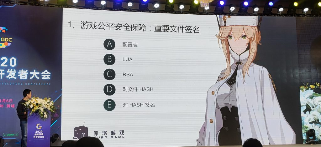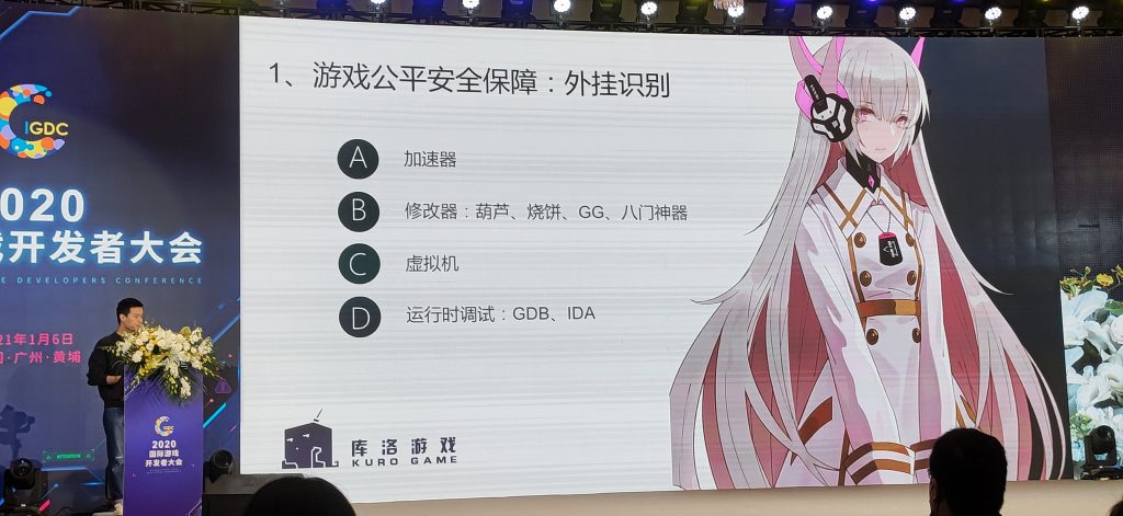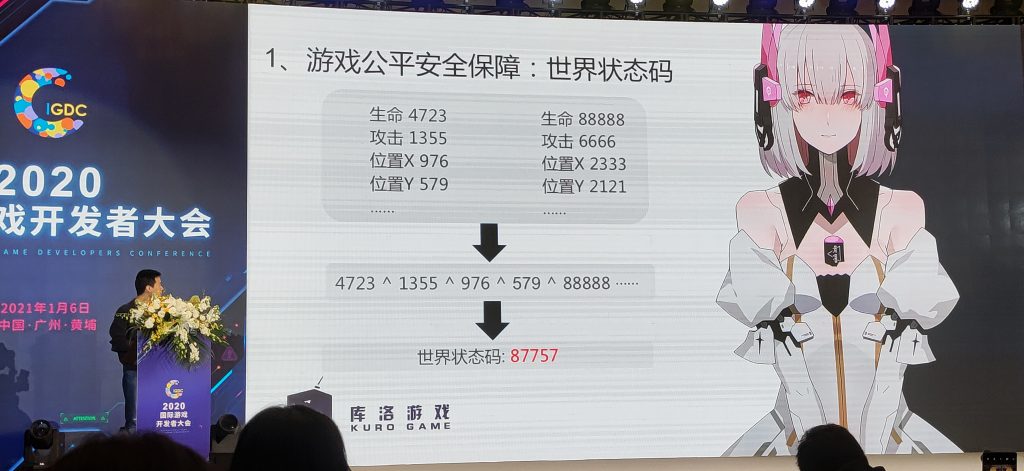 大会上,库洛游戏技术总监林晨晨还亲自上台进行了《战双》技术开发分享,讲述他们在游戏公平安全保障和动作游戏手感要素两方面的心得和做法,以下是手游那点事带来的演讲整理,具体内容为便于阅读有所删改: