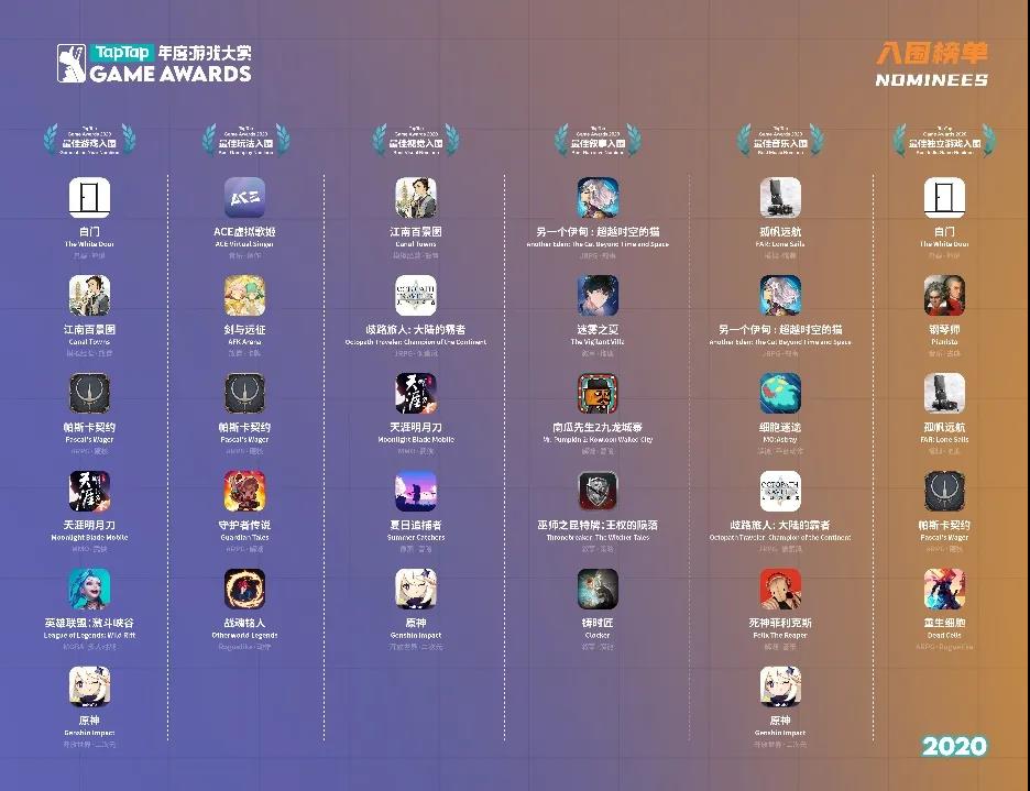 这五届大赏看过来,可以看出一个变化,就是TapTap大赏的入围审美,似乎逐渐和更主流的用户重合。一开始的入围名单多以小众独立游戏为主,可能叫好,但不算叫座,起码在主力手游群体中,大部分产品可能都没听说过。但到了2020年,入围的产品可以都说是耳熟能详了。