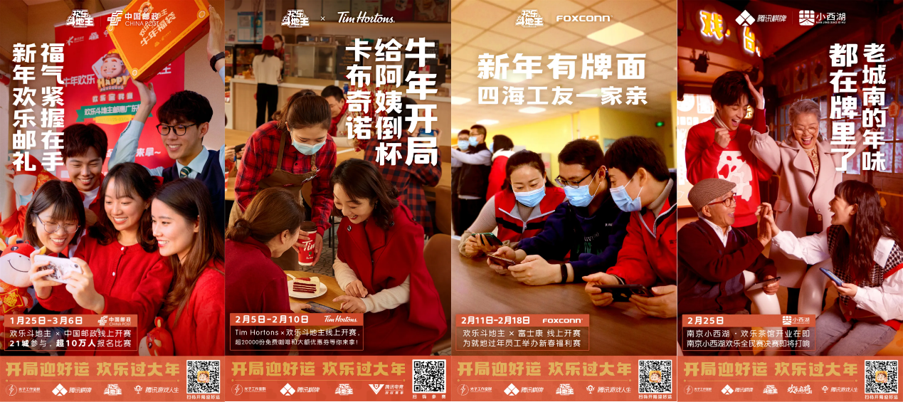 2月11日-2月18日,腾讯棋牌携手富士康为武汉就地过年员工举办新春福利赛,让四海工友开心过大年。2月25日,南京小西湖举办的欢乐全民赛也进入决赛。遍地开花的欢乐全民赛从年前一直热闹到元宵后,真正意义上做到零门槛全民可参与,不管在哪都能“开局赢好运,欢乐过大年”!