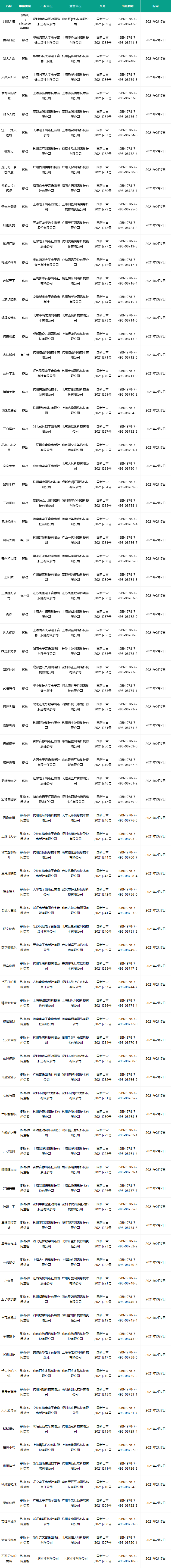 在「移动」类别获批的:游族《伊甸园的骄傲》、龙渊《战斗天使》、天梯《奥比岛:梦想国度》、心动《符剑如律令》、龙图《超级改造家》、朝夕光年《花亦山心之月》、银汉《上阳赋》等;