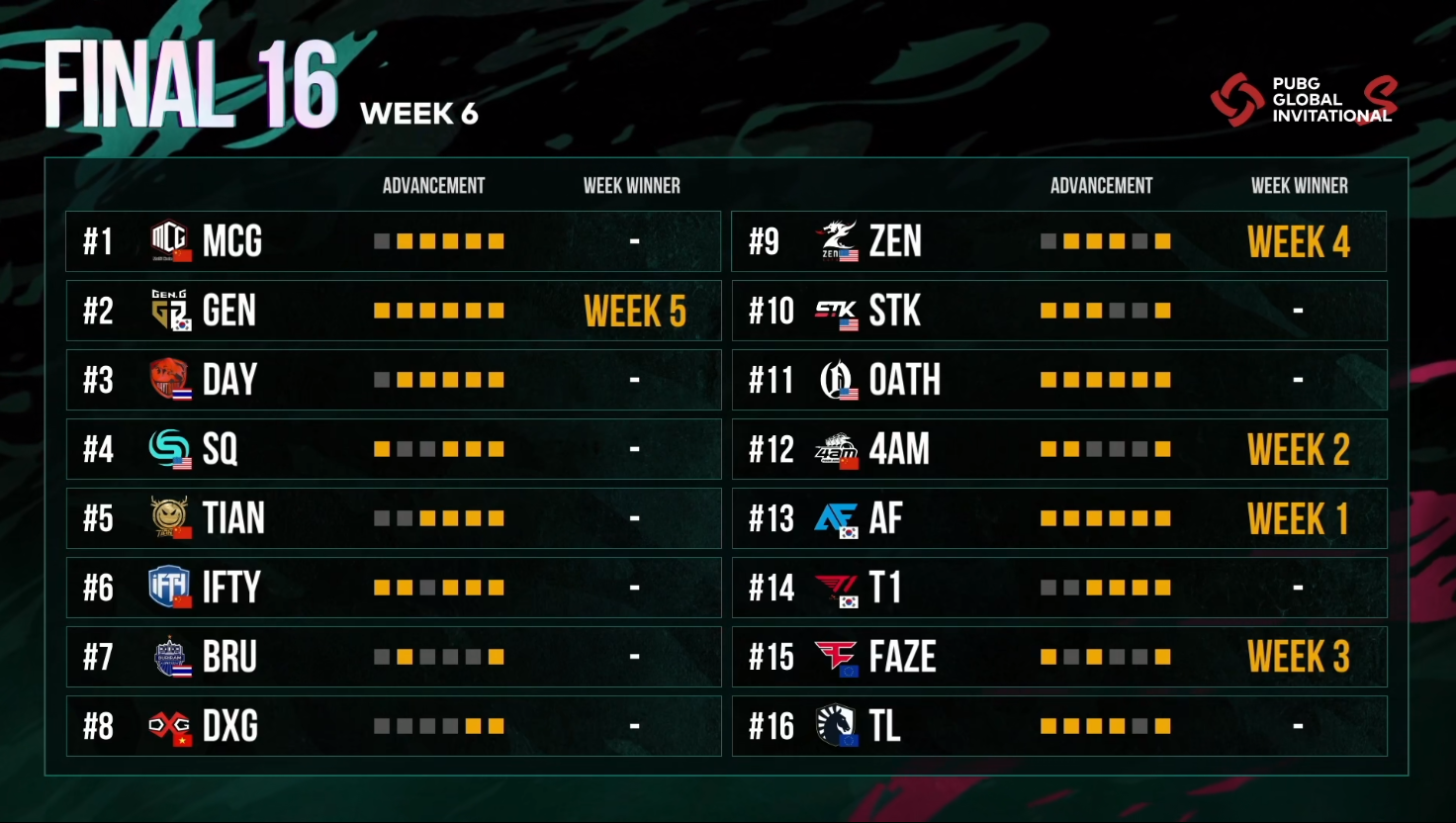 经过周中赛三天的厮杀,成功脱颖而出晋级周决赛的PCL战队是MCG、TIANBA、iFTY、4AM。在第六周的周决赛名单里,前五周周冠军均悉数就位,他们将共同争夺最后的总冠军之位。