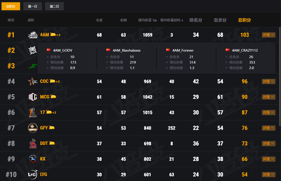4AM战队——Xiaohaixxxx回归,CRAZY112带队稳居榜首