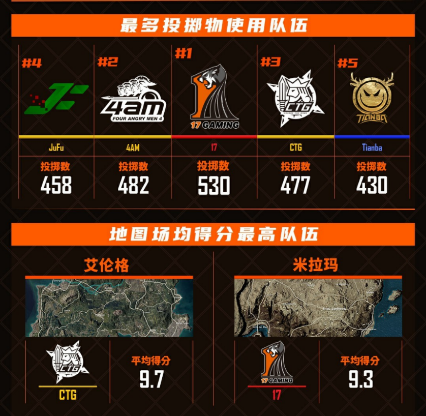 在本次2021PCL春季赛中,最出人意料的可能是CTG战队,以周中赛总积分第十进入周决赛的他们,在一鸡未吃的情况下长期占据头名,最后距离周冠军也仅有两分之差。而这一份数据,就建立在了队伍四人的默契上,Monkeyking、LingQiang、LuckyWss、PaoPao四人无论是团队配合亦或个人战斗都能发挥出出色的战斗力。在第一周常规赛中,CTG战队是艾伦格场均得分最高的队伍,平均得分高达9.7。而队伍里位列总淘汰榜第七的LuckyWss也常常能帮队伍打开局面,找到最佳进圈线路夺取排名分。