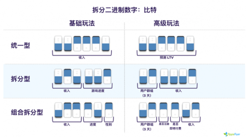 组合拆分六个比特的多种方案,轻松配置转化值:AppsFlyer 新发布的《指南》将详细解读转化值运算逻辑,基础及高阶设置玩法。开发者仅需要根据衡量的具体事件,选择不同的组合模式,决定如何利用比特值,实现比特价值最大化。