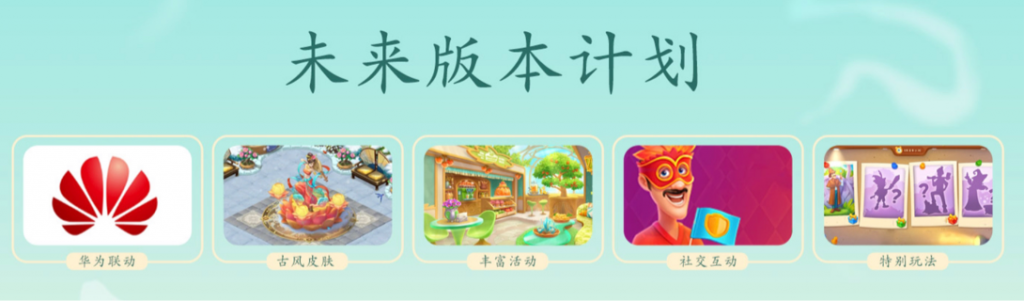 而在未来,除了首个三希堂古风皮肤返场外,将会推出“未来花园”全新版本,以及“城堡装修”、“瑜伽赛季”、“赛舟船活动”三大游戏内活动,同时将开启与华为的联动,华为渠道玩家将活动专属联动放假。同时,未来也将会在花园中加入更多古风元素,推出更多与中国风结合的游戏内容。