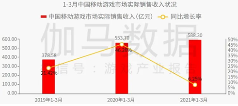 在用户增长层面,2020年中国游戏用户规模超过6.6亿,目前国内游戏对于用户的渗透已处于较高水平,随着疫情的可控,居家经济红利也将进一步弱化,2021年1-3月移动游戏市场同比增长率仅为6.25%,相比于2020年第一季度同比增速出现下滑。为防止中国游戏用户及市场规模的下滑,从多渠道继续补充用户仍是重点,比如从社交平台、新闻资讯、阅读平台等多个平台进行用户的获取,进而维持游戏产业用户及市场规模的稳定。