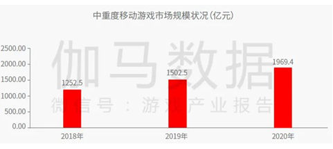 中重度移动游戏市场规模:指中重度移动游戏产品所获得的用户充值流水金额
