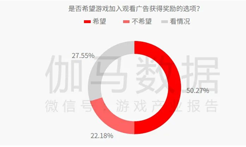 基于相关挑战,伽马数据针对用户展开深层次调研,发现不同层级付费用户偏好具备差异性,不付费或低付费意愿的用户观看广告意愿最强。而对于中高付费用户群体,这部分用户更愿意通过付费方式来支持喜欢的游戏。因此,混合变现成为游戏产品可探索的模式,进而满足中重度游戏用户差异化的需求。根据相关调研显示,超过半数中重度游戏用户也明确表示希望加入观看广告获得奖励的选项。