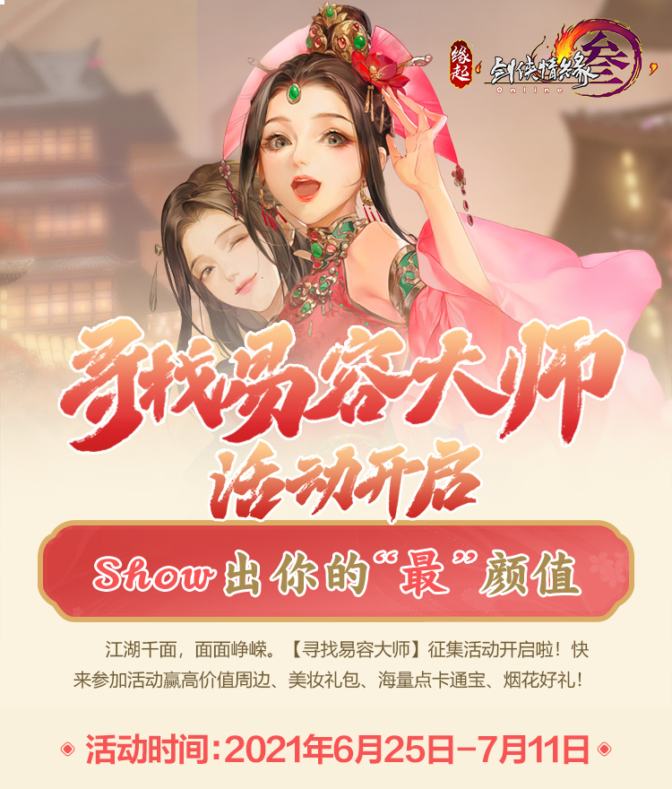 江湖千面,面面峥嵘,“寻找易容大师”征集活动同步开启!捏脸系统全新升级,国创手绘工艺遇上重绘高清贴图,碰撞出复古绝世容颜!快来投稿分享捏脸美图,参与活动show出你的“最”颜值吧!还有机会领取价值3600元的实物豪礼!