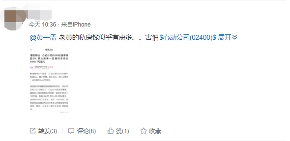 一位雪球用户发帖表示:“老黄的私房钱似乎有点多。。害怕”,并@到了黄一孟。
