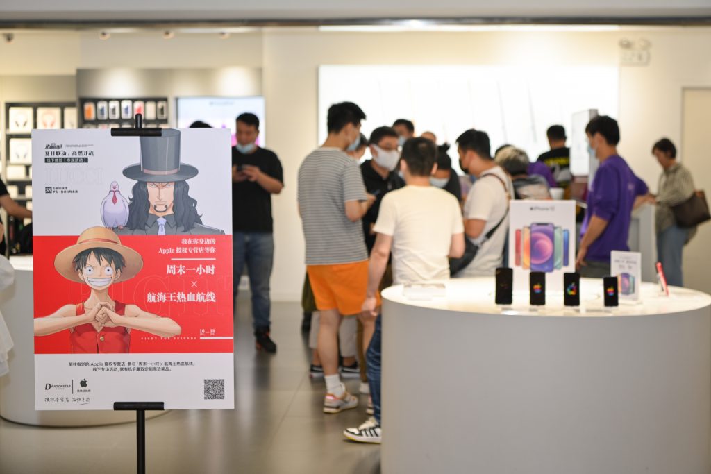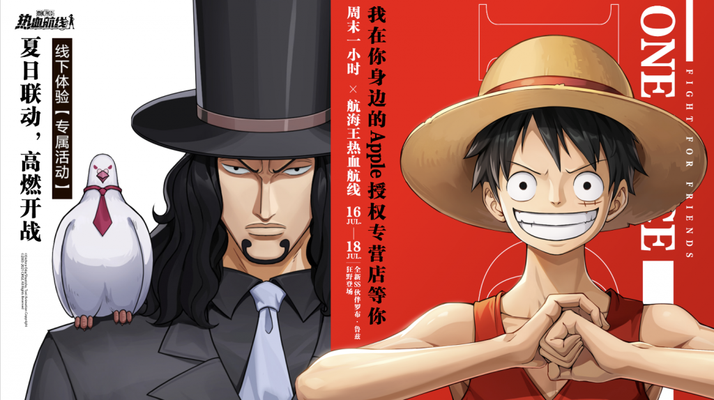 朝夕光年就迈出了这大胆的一步,《热血航线》暑期档活动也大手笔地拉上了2300+Apple授权门店,覆盖全国650+城市,用规模空前的线下覆盖度,开展这一次主题为“周末一小时X航海王热血航线”的推广。