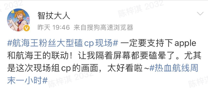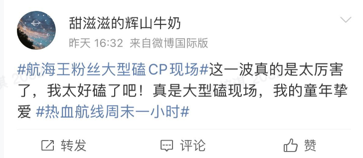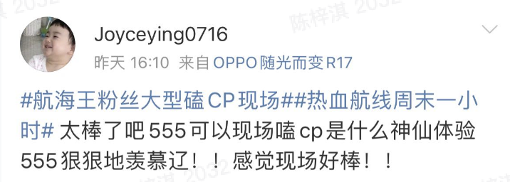 伴随着城市中庭Coser聚集巡游传播的#航海王粉丝大型嗑CP现场 不仅在线下让Coser和路人、玩家的互动更有趣生动,也在线上形成了CP9 VS 9CP等梗点在玩家和粉丝间传播,引发大量讨论。