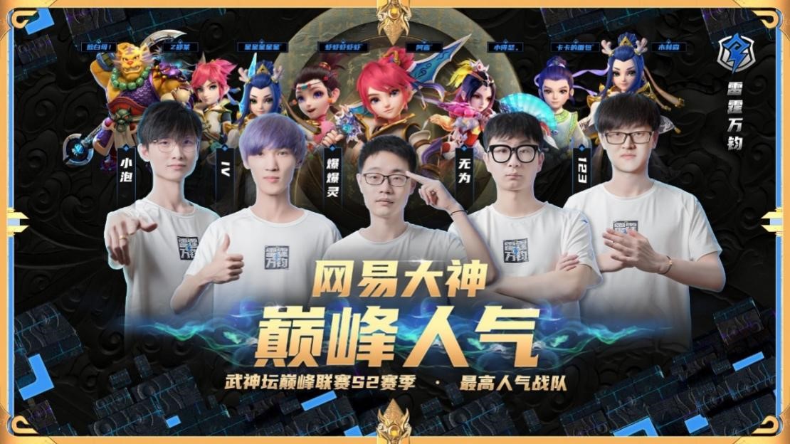 「丿Sa灬晨曦丶」获得【极道神医】、「蕐南虎˚」获得【极道神封】、「小得瑟。」获得【神乎其技】、「跳梁跋扈」获得【怒灵之王】【煞灵之王】。其中,雷霆万钧代表队呼声超高,荣登本届武神坛巅峰联赛S2赛季的人气巅峰,成为【最高人气战队】。