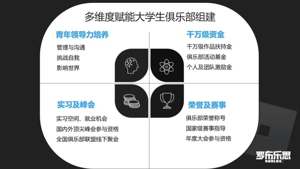 为了培养行业人才,帮助更多有志于进入游戏行业的新生代创作者,罗布乐思联合多个高校推出高校社团计划——Metaverse club,通过提供千万资金支持、领导能力培养、提供实习空间与就业机会、搭建完整赛事体系等方式,给予这些年轻大学生开发者们更多的实践机会和展示舞台,为他们未来进入游戏行业做好职业铺垫。