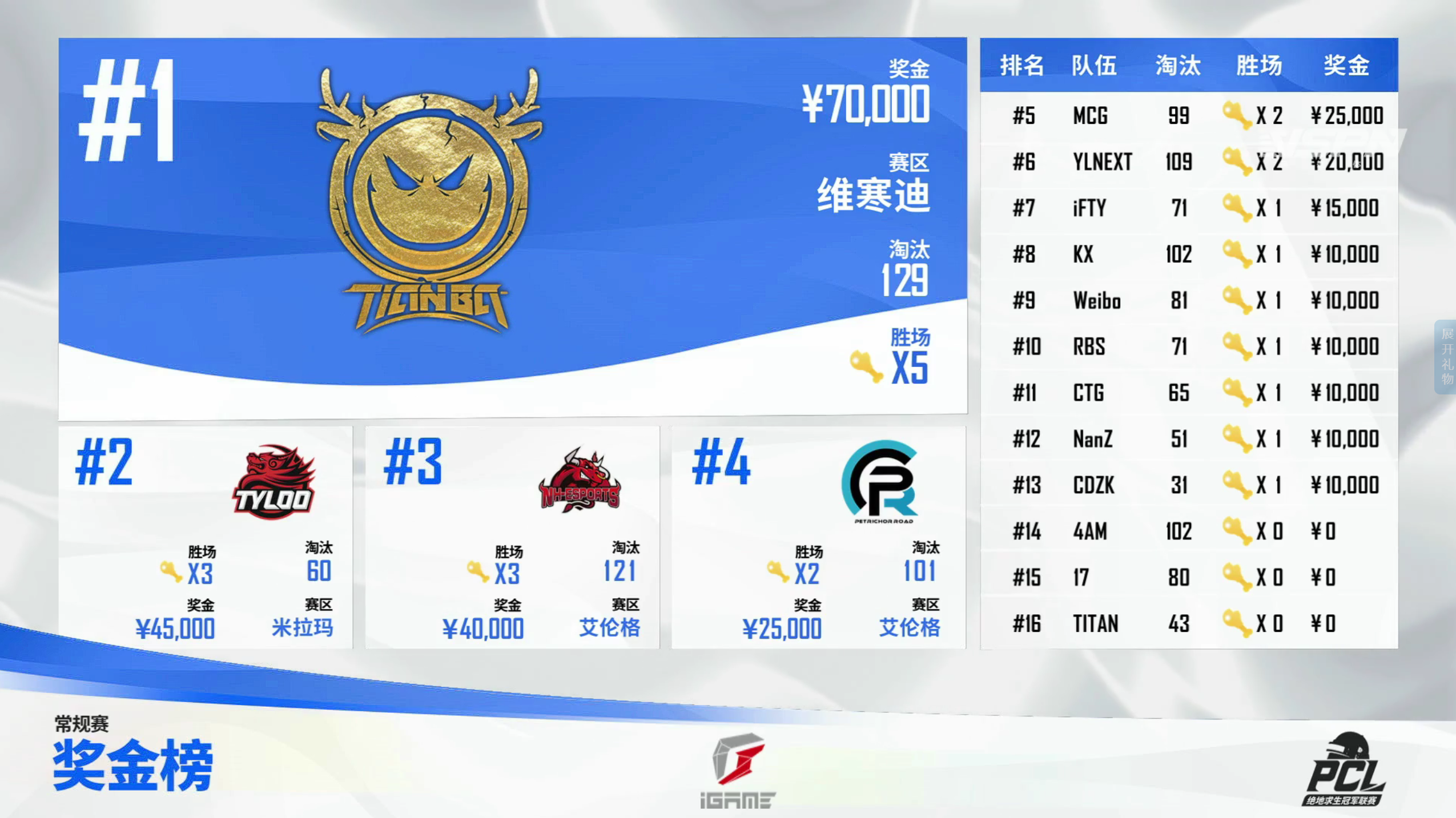 2021 PCL夏季赛常规赛第二周比赛落下帷幕,本周的比赛从周中赛到周决赛都异常精彩,令人看的热血沸腾。目前Tianba战队暂时位列总奖金榜的第一名,但后面的吃鸡奖金会逐布提高,越到最后关头越是紧张刺激。第三周的比赛将于8月3日(周二)18点开始,常规赛即将过半,各支战队势必开始发力,第三周的对决又将碰出怎样的火花,让我们共同期待!