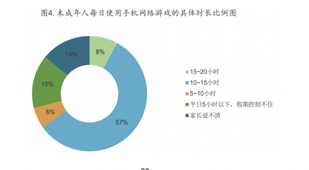 在这份报告中,所谓的每天10小时游戏时间以上的未成年人占比达到了65%,所有的调研数据均是“全国各地向我们反映孩子沉迷手机网络游戏的家长”。