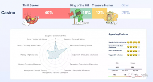 博彩游戏不仅会吸引那些想要赢得下一份大奖的玩家,也会吸引喜欢博彩游戏中收集元素的玩家。46岁以上的男性和女性是这类游戏的主要用户。