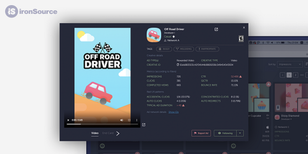 以色列特拉维夫,2021 年 9 月 9 日 —— 应用经济领先的商业化平台 ironSource(纽交所代码:IS)宣布拓展旗下 Ad Quality 解决方案。在今年早些时候收购 Soomla 并推出 Ad Quality 解决方案之后,ironSource 通过此次功能拓展继续深化和加强 AdQuality 的专业性和全面性,让开发者们能查看和控制向用户展示的广告。升级后的 Ad Quality 解决方案可通过监测向用户显示的广告内容来保障品牌形象,深入洞察用户路径以改善应用体验,最终实现广告变现优化。此外,它面向所有开发者开放,不局限于 ironSource 聚合平台用户。