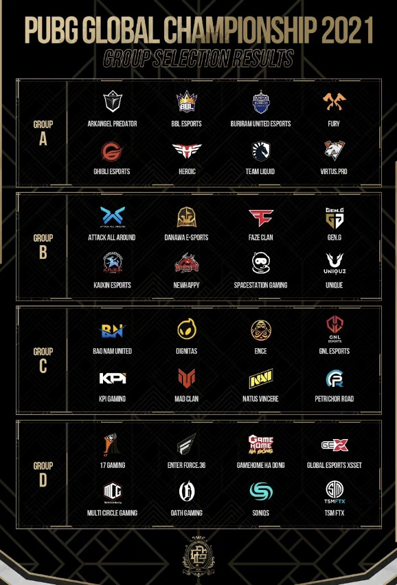 排位赛的分组已于11月8日抽签得出,具体分组情况如图所示。A组中Liquid战队、BRU战队、GBL战队都有不俗的实力。NH战队和KX战队则被分在了B组,同组的劲敌有Faze战队、ATA战队以及老对手Gen.G战队和DNW战队。C组中则有来自PCL赛区的PeRo战队,以及欧洲劲旅ENCE战队和Navi战队。PCL的另两支队伍17战队和MCG战队被分至D组,同组的强敌还有SQ战队、Oath战队和TSM战队。