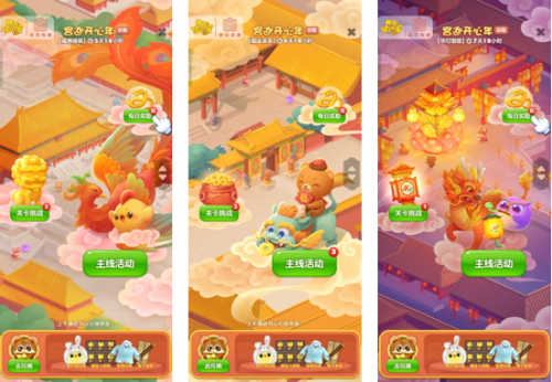 小编在体验过第一个活动之后,便对其爱不释手,不仅因为活动玩法本身,更因游戏内无处不在的《开心消消乐》诚意——毕竟谁曾料想,消消乐消除的背景居然能做成最经典的红墙黄瓦Style呢?一整个满足了还在望眼欲穿等待去故宫看雪的小编。