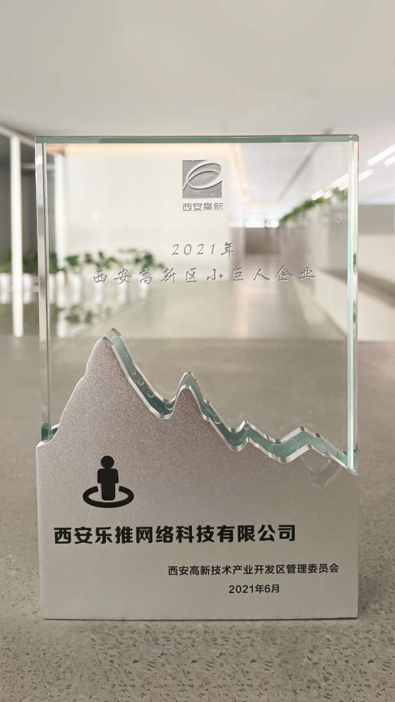 2021年6月,乐推(LETUI)被批准认定为 “2021年西安高新区小巨人企业”及 “2021年西安高新区瞪羚企业”;