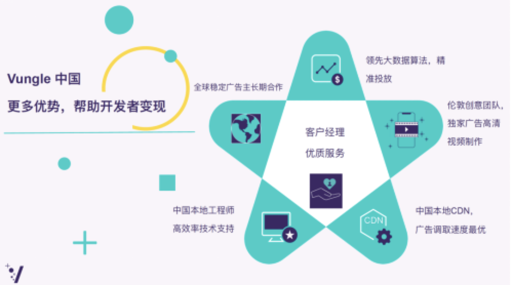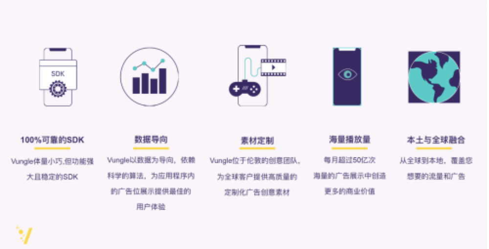 Vungle一直以数据为导向,并基于用户体验,不断创造新颖的广告模式、广告素材以及优化工具等产品。目前为止,Vungle广告创意已覆盖超过10亿台移动设备,在用户获取、流量变现、创意技术和内容分析方面,帮助广告主和开发者提高互动和回报。