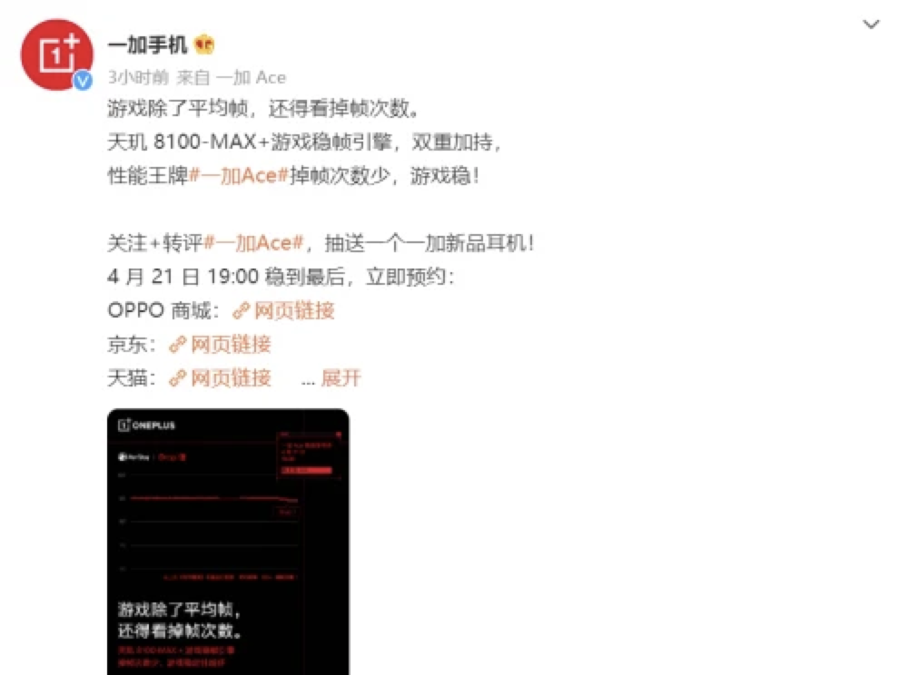 一加Ace搭载天玑8100-MAX+游戏稳帧引擎,不仅在游戏性能上有着十足稳定、高效的表现,而且在设计、品质、影像等方面也有全面的保障,实力可圈可点。对新机感兴趣的你,不妨关注一波4月21日19点的新品发布会。