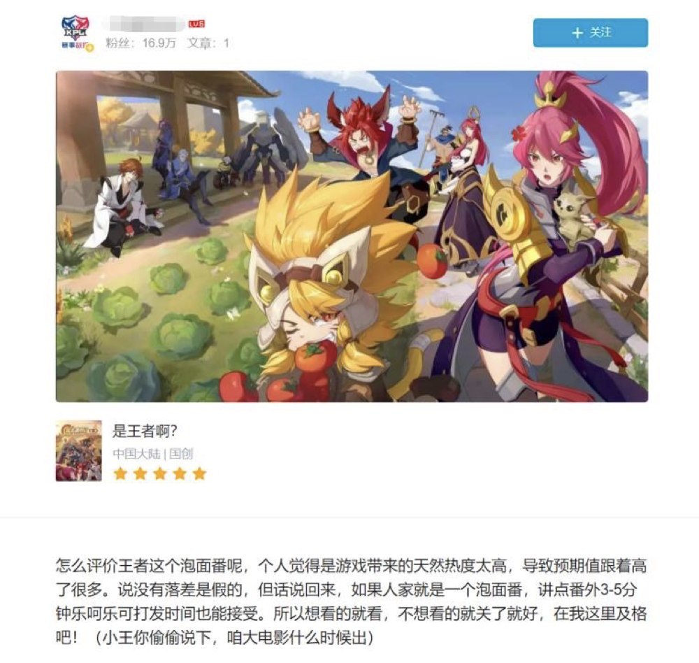 观众与玩家的评论,其实亦侧面论证了《是王者啊?》主打的轻量、爽快、趣味的风格,正好能够满足大众碎片时间的娱乐消遣,为之后叙事更丰满与沉重的电影、剧集铺设好IP认知基础。